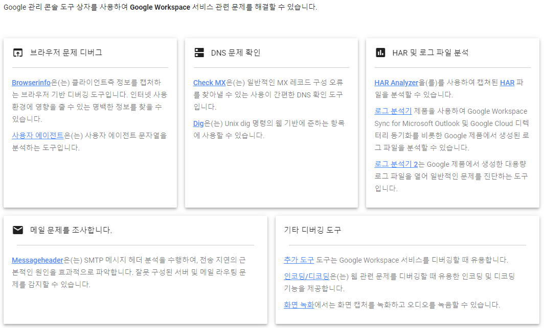 Google 관리 콘솔 도구 상자(toolbox)